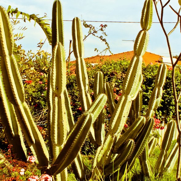 Cactus overgrown with weeds